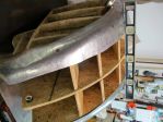 Progress on the Track-T grill shell is slow but that's ok. I'm learning I hope. I am trying not to apply too much pressure with the English wheel and just take my time with it. I might try to tighten the overall curve from top to bottom on the driver side with one or two more tucks at the top but I don't want to push my luck. The metal sits close to the buck all the way up now except at the very top where it rises about 3/4 of an inch at most. Yeah, I guess I better tuck it too. Hard to tell when to tighten the wheel but I figure about every 15 to 20 minutes of rolling should allow me to tighten it just a bit. If it feels a bit too snug or sounds a bit too snug, I'll back off a bit. Hard to know just what to do so I'm taking my time. I don't think I've wrecked anything yet.