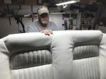 Hey Jaxon ,he's actually steaming a new upholstery to remove wrinkles and make it fit like a glove, notice the fit in the first photo where Randy was holding