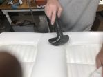 Hey Jaxon ,he's actually steaming a new upholstery to remove wrinkles and make it fit like a glove, notice the fit in the first photo where Randy was holding