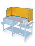 After purchasing my first mig welder ( Lincoln 140) I discovered that I needed a weld shield. I checked online and the ones worth buying don't come cheap. So I took a design I saw in Google images and made one that anyone can for much less using strong thread or fishing line, grommets, a sheet of thick plastic sheet, two short metal rods, two small hinges, two small 'L' brackets and an old aluminum clothes line. It works great and is easily erected on or removed from a bench top. Sorry the photos aren't better but you get the idea. If anyone needs better photos, let me know.