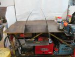 After purchasing my first mig welder ( Lincoln 140) I discovered that I needed a weld shield. I checked online and the ones worth buying don't come cheap. So I took a design I saw in Google images and made one that anyone can for much less using strong thread or fishing line, grommets, a sheet of thick plastic sheet, two short metal rods, two small hinges, two small 'L' brackets and an old aluminum clothes line. It works great and is easily erected on or removed from a bench top. Sorry the photos aren't better but you get the idea. If anyone needs better photos, let me know.