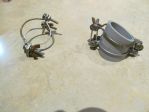 Well it takes a while fidgeting with them and deciding what materials work best and I ended up using old coat hangers cut to 4 1/4" and twisting them up to hold the bolts. Four curved pieces per clamp plus a shorter piece for a long loop for one side and then a small block of steel with two holes for bolts on the other side of the clamp. Wing nuts or nuts that were in the jar, nothing special. Twisting the coat hangers to make small bolt holes was the hardest part. Otherwise, maybe some tweaking here and there but I think they'll work. Just two more to make I think should be enough. I hope this helps somebody someday.