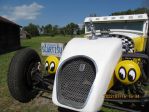 So heres your plan the plate says Scartissue , you got a funky cool old yellow hot rod , it has a ford motor in it