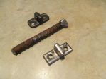 I cut a small 1” chunk off the end of a rebar and shaped it on the grinder and with a file to fit inside the original catch nice and snug. Then I made a template in cardboard and cut some 18 gauge for the finished piece. I Used a hacksaw for the fine cutting to make corners and stuff.
