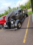 I hope the couple of rodders we past in Kingston this am we’re ok. We couldn’t get all the way over to the shoulder in time as traffic was heavy there. Looked like two cars pulled over, a white and blue Ford and I couldn’t see the other one because of the transports, just that there was a second set of rims there…..