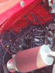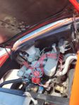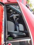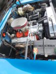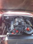 I wasn’t able to get a peek under the hood of the red 55 gasser at the Action Accessories cruise night this past Wednesday. However they were downtown today as well. So here’s what is powering this beast and a pic of the creature comforts for the lucky folks that ride around in it.