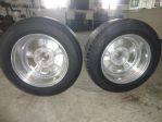 One more time. Wheels were sold but "NO SHOW". Wheels are 15" x 8" with 43/4" back spacing.GM bolt patternĀ ( 5 by 43/4") Tires are Cooper 215 60 15. Both wheels and tires are in very nice condition. No disappointments $300.00 firm. SOLD