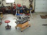 This is the blown aluminum engine that had locked up some years back. Decided to find the problem, pulled the heads and it spun freely, wanted to replace the head gaskets anyway